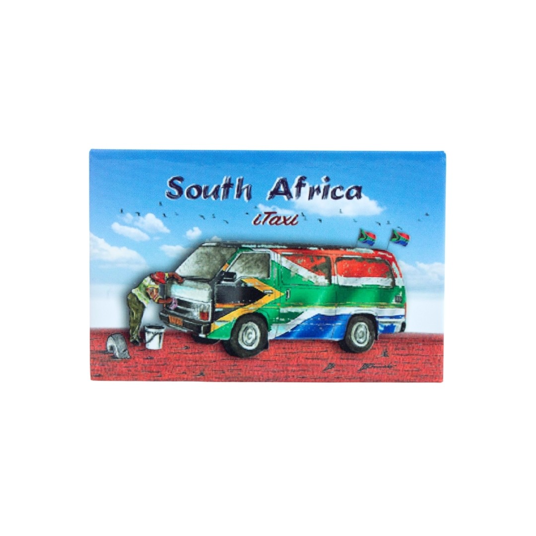 A tribute to the iconic South African minibus taxi, this magnet embodies the energy of local transport, connecting people and places in everyday life.